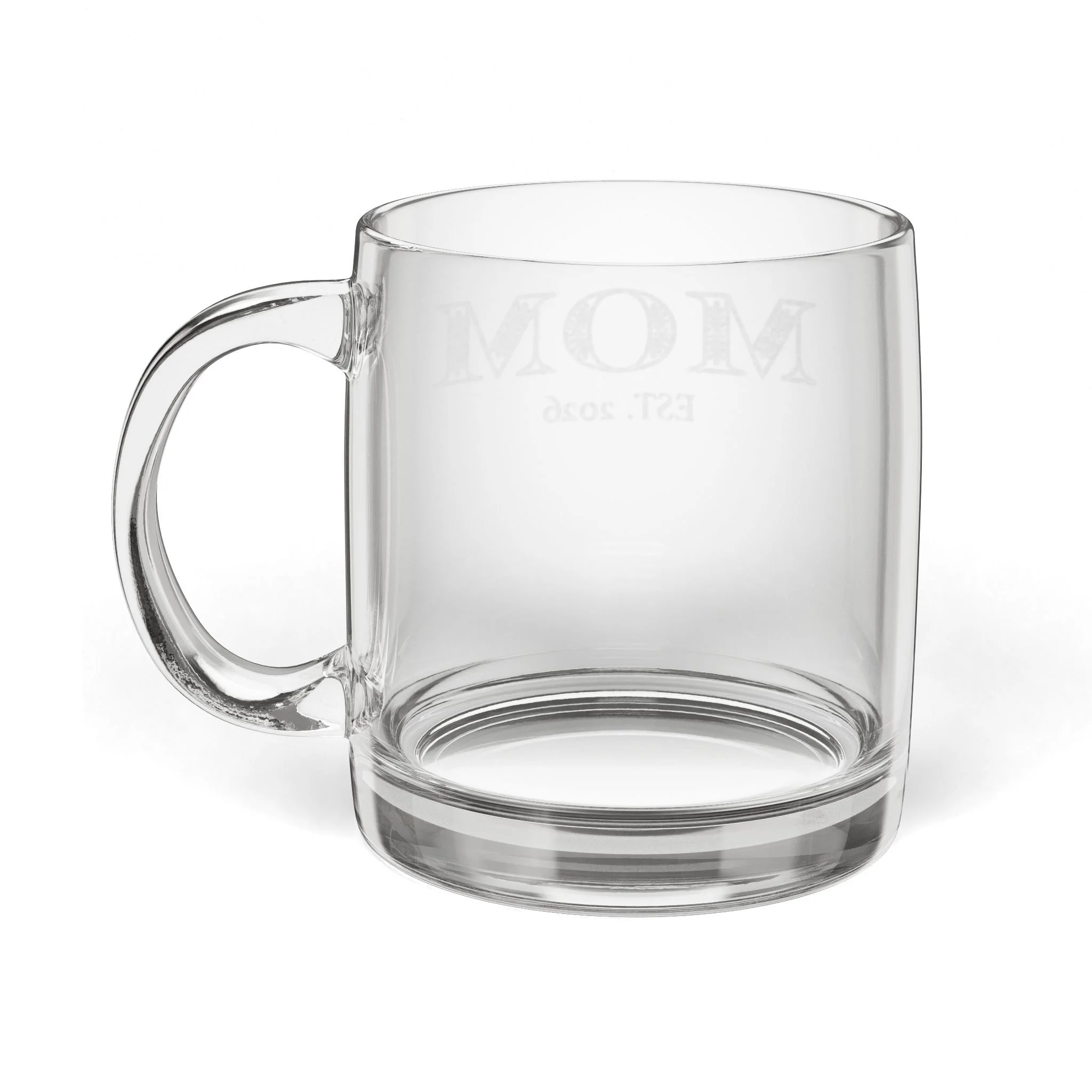 Product features - 12.25oz (362ml) clear glass capacity - Engraved permanent etching — won’t fade or peel - Dishwasher-safe for easy cleaning - Microwave-safe for reheating drinks - Durable, crystal-clear glass with comfortable handle