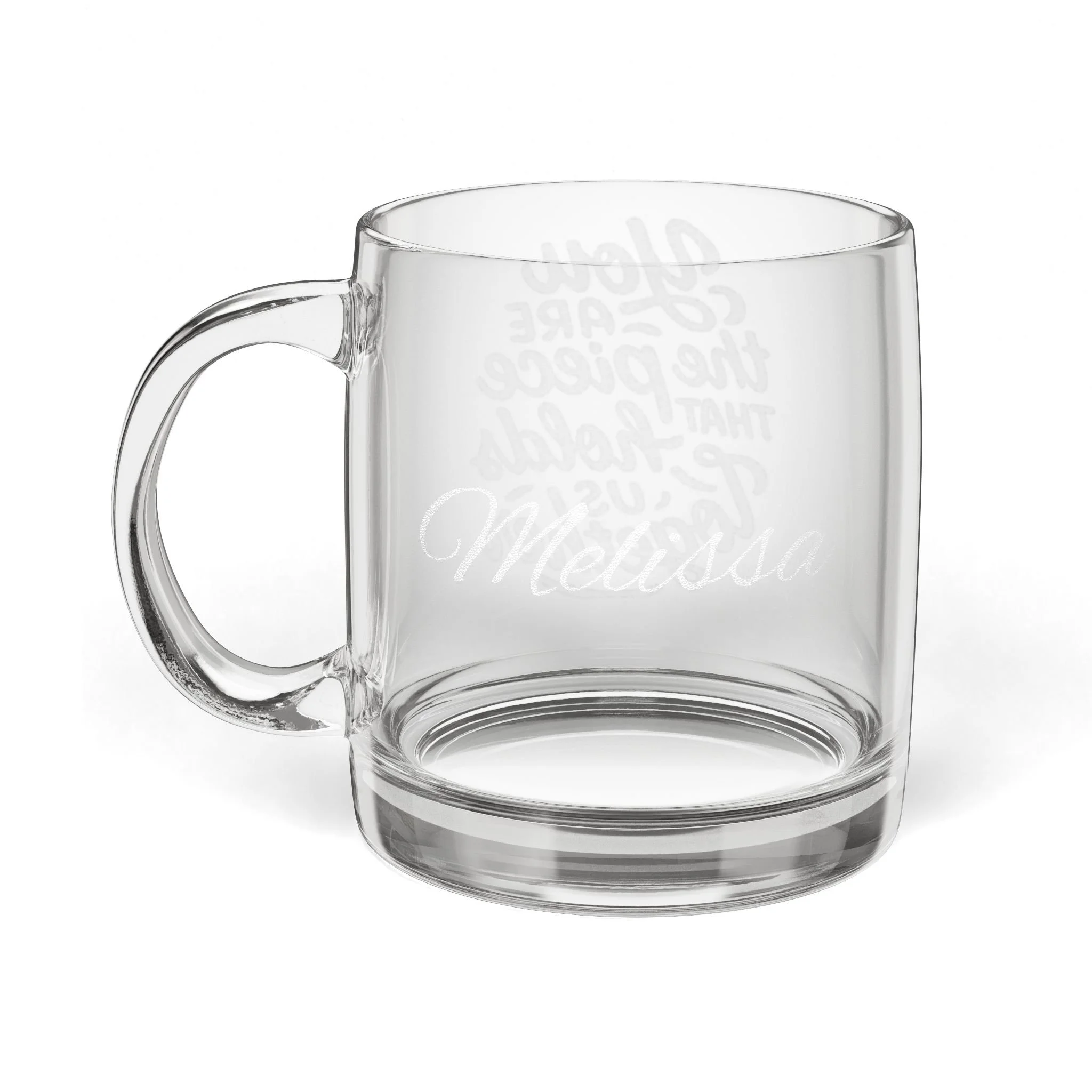 Product features - 12.25oz (362ml) clear glass capacity - Engraved permanent etching — won’t fade or peel - Dishwasher-safe for easy cleaning - Microwave-safe for reheating drinks - Durable, crystal-clear glass with comfortable handle